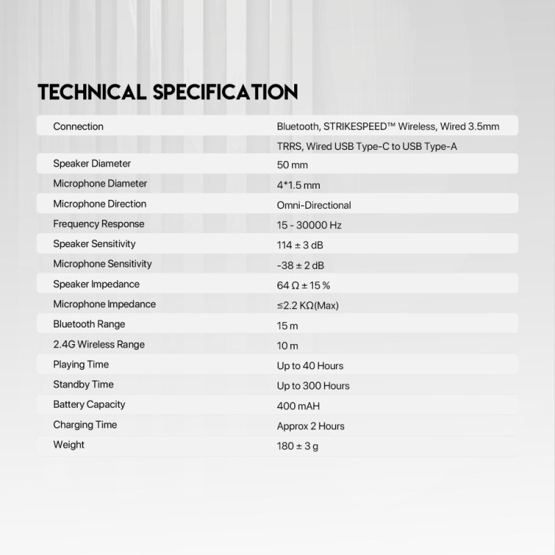 Tämä TEEVO-kuuloke tarjoaa täydellisen monipuolisuuden kolmen käyttötavan ansiosta: Bluetooth, 2,4 GHz:n langaton ja 3,5 mm:n langallinen yhteys, mikä mahdollistaa laajan yhteensopivuuden konsolien, tietokoneiden, matkapuhelimien ja tablettien kanssa. Sen 50 mm:n kuljettajat tuottavat rikkaan ja yksityiskohtaisen äänen, joka sopii yhtä hyvin multimediaan ja pelaamiseen. Kevyt, kokoontaitettava muotoilu yhdistettynä hengittäviin korvatyynyihin takaa pitkäaikaisen käyttömukavuuden. Matalan viiveen tila parantaa reagointikykyä nopeatempoisissa peleissä, ja jopa 40 tunnin akkukesto takaa pitkäkestoisen kuuntelun. Toimitetaan USB-C- ja USB-A-dongleilla helppokäyttöisyyttä varten.