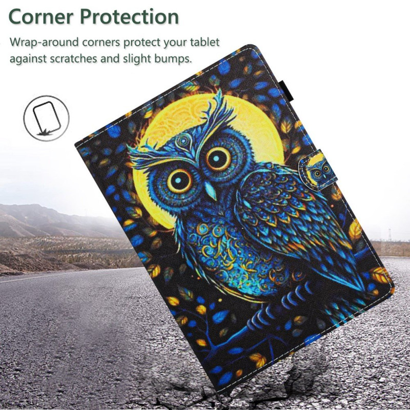 Tässä Lenovo Tab M10 (Gen 3) -puhelimen foliokotelossa yhdistyvät suojaus ja tyyli, ja siinä on upea Moonlight Owl -kuvio.