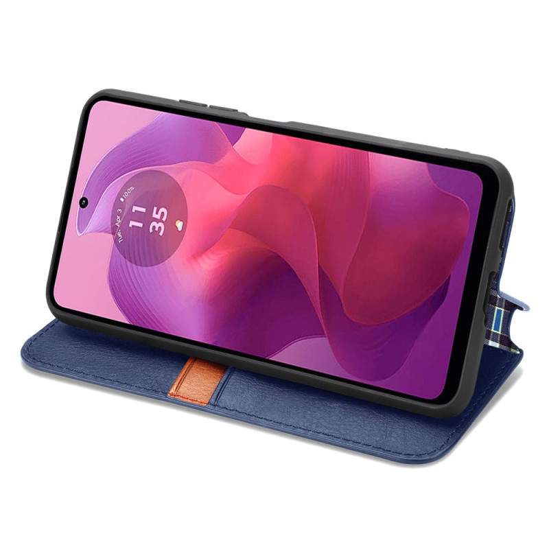 lompakkokotelo Motorola Moto E14:lle tarjoaa täydellisen suojan tyylikkäällä timanttikuvioisella muotoilulla.