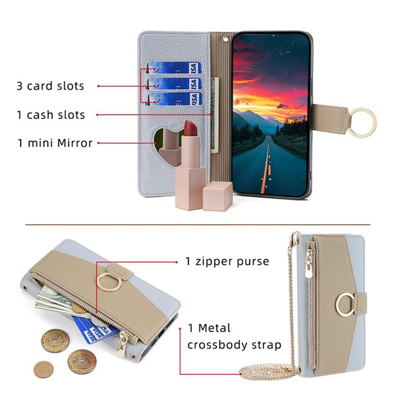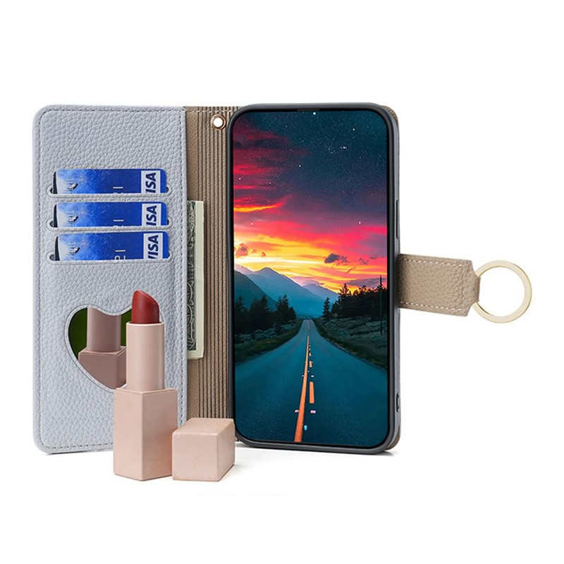 on, jossa on integroitu meikkipeili ja olkakantolenkki