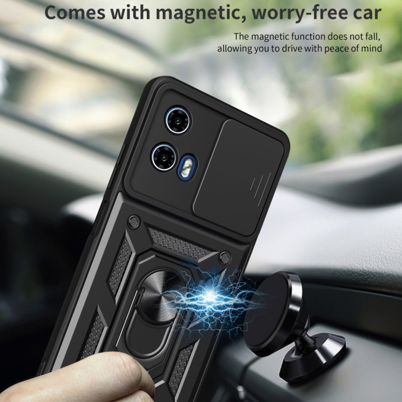Tutustu innovatiiviseen suojakuoreemme Motorola Moto G45 5G / G34 5G -puhelimelle. Laadukkaista materiaaleista valmistettu suojakuori tarjoaa sotilasluokan suojan, käytännöllisen pyörivän kiinnikkeen, mobiililinssien suojan ja yhteensopivuuden magneettikiinnikkeiden kanssa. Ihanteellinen jokapäiväiseen käyttöön ja optimaalinen suoja älypuhelimellesi.