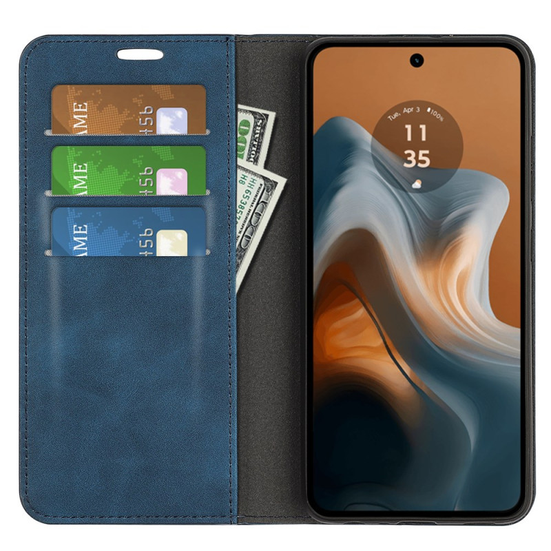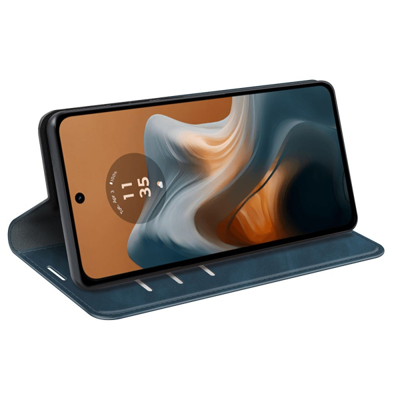 Tutustu PU-nahkakoteloon Motorola Moto G45 5G / G34 5G. Tässä kotelossa yhdistyvät tyylikkyys ja toiminnallisuus, sillä se tarjoaa vankan kaksoissuojan, käytännöllisen lompakkomallin ja tukitoiminnon.