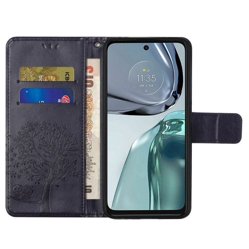 tilukko, suojaa Moto G62 5G -puhelinta ja toimii samalla lompakkona.