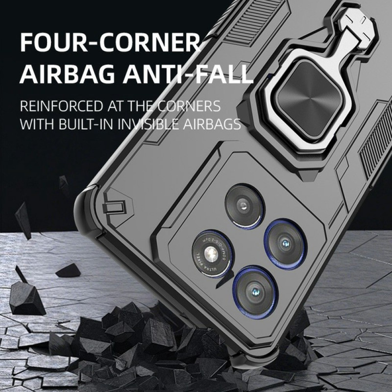 Tutustu Motorola Edge 60 Stylus 5G -puhelimen kestävään koteloon. Siinä on 360° kääntyvä tuki, ja se tarjoaa paremman suojan iskuja vastaan PC- ja TPU-muotoilun ansiosta.