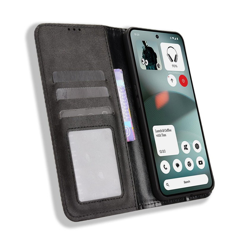 Suojaa Nothing Phone (3a) Lite 5G -puhelimesi tyylikkäästi tällä retrohenkisellä PU-nahkalompakkokotelolla. Siinä on useita korttipaikkoja, säädettävä pidike ja automaattinen magneettisuljenta, ja siinä yhdistyvät vintage-tyyli ja toiminnallisuus.
