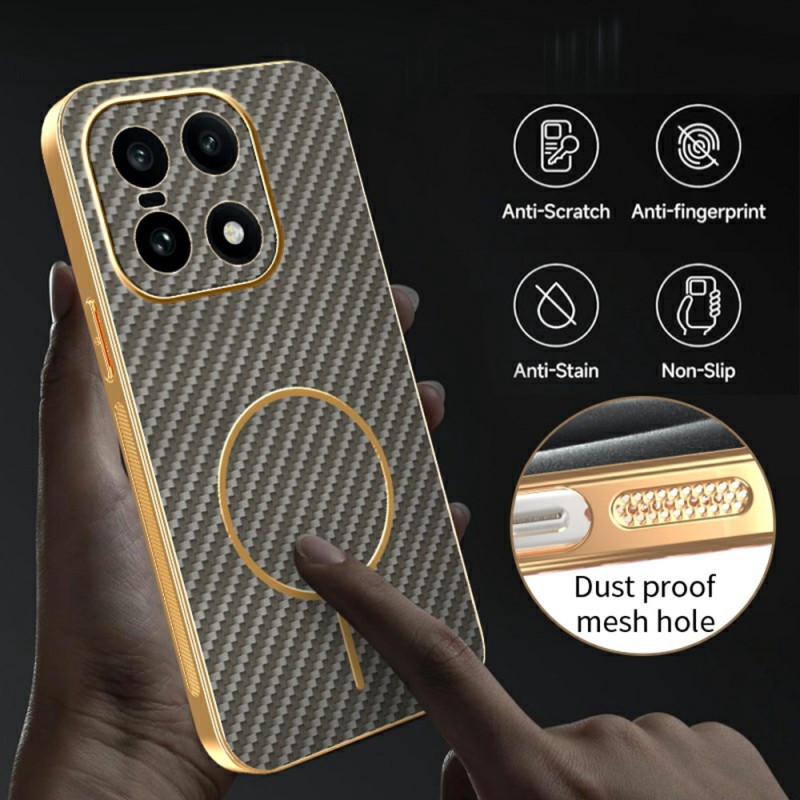Ensiluokkainen suoja OnePlus 15 5G -puhelimelle tyylikkäällä galvanoidulla viimeistelyllä ja hiilikuitukuvioinnilla. Joustava TPU-rakenne tarjoaa optimaalisen iskunvaimennuksen, sormenjälkien kestävyyden ja korotetun kamera- ja näytönsuojan.