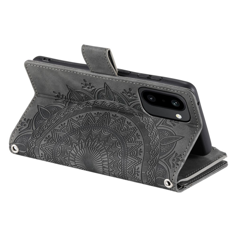 Tyylikäs PU-nahka lompakko suojakotelo OnePlus 15R 5G hienostunut mandala motiivi. Siinä on useita korttipaikkoja, vetoketjullinen tasku ja käytännöllinen käsihihna. Integroitu jalusta-toiminto handsfree-käyttöä varten ja turvallinen magneettisuljenta.
