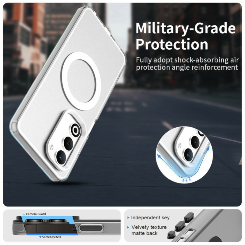 Suojaa Oppo A5 5G -puhelimesi tällä MagSafe-yhteensopivalla kotelolla. Iskunkestävä hybridimuotoilu, jossa on magneettinen langaton lataus. Korotetut reunukset suojaavat näyttöä ja kameraa. Ohut ja tyylikäs muotoilu jokapäiväiseen käyttöön.
