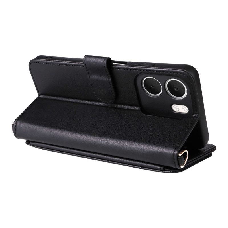Tyylikäs lompakkokotelo Oppo A5X 4G:lle premium PU-nahasta, jossa on säädettävä jalusta, turvallinen magneettisuljenta ja irrotettava olkahihna. Suojaa puhelimesi tyylillä ja pidä samalla kortit ja käteinen käden ulottuvilla.