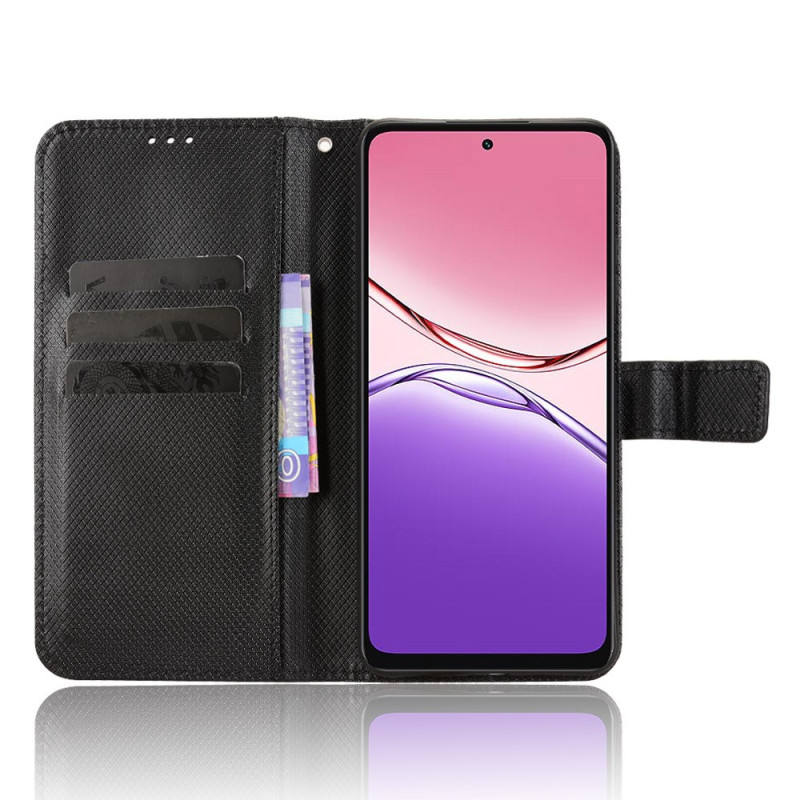 Tyylikäs lompakko suojakuori timantti kuvio Oppo A5X 4G. Sisältää korttipaikat, käteistaskun ja käytännöllisen käsihihnan. Turvallinen magneettisuljenta ja integroitu taitettava jalusta handsfree-katseluun.