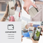 Tyylikäs PU nahkakotelo magneettisella lehtilukolla Oppo A6 Pro 5G / 4G:lle. Sisältää 3 korttipaikkaa, 1 käteistaskun ja ulkoisen vetoketjutaskun. Integroitu jalusta handsfree-katseluun ja irrotettava käsihihna.