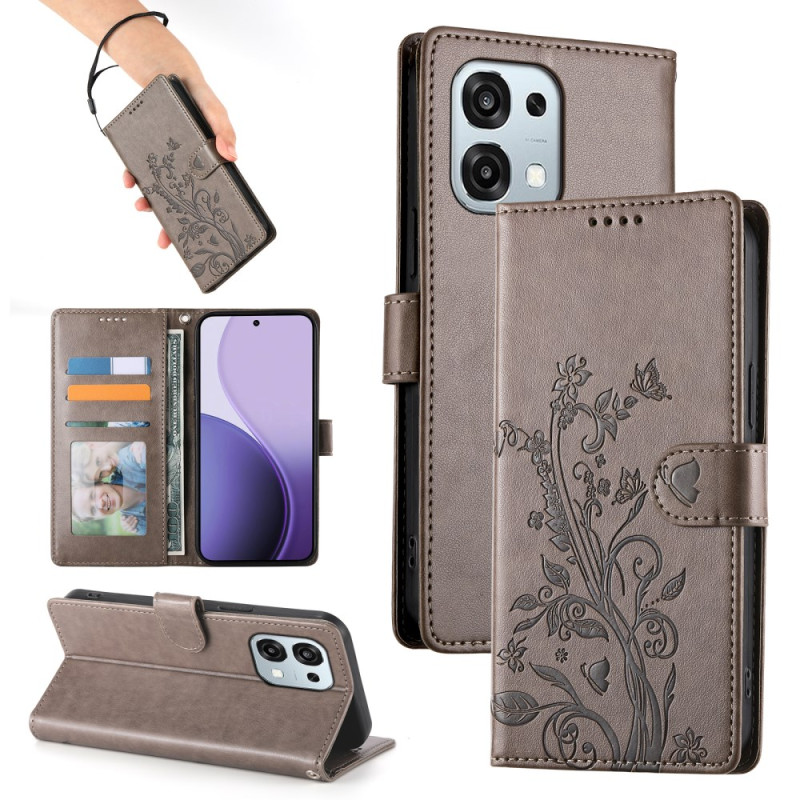 Tyylikäs lompakkokotelo, jossa on kohokuvioitu kukkaperhosmalli Oppo A6 Pro 5G / 4G -puhelimelle. Yhdistä tyyli ja suojaus tässä keinonahkakotelossa, jossa on useita korttipaikkoja, säädettävä taittuva jalusta ja kätevä käsihihna turvalliseen kantamiseen.
