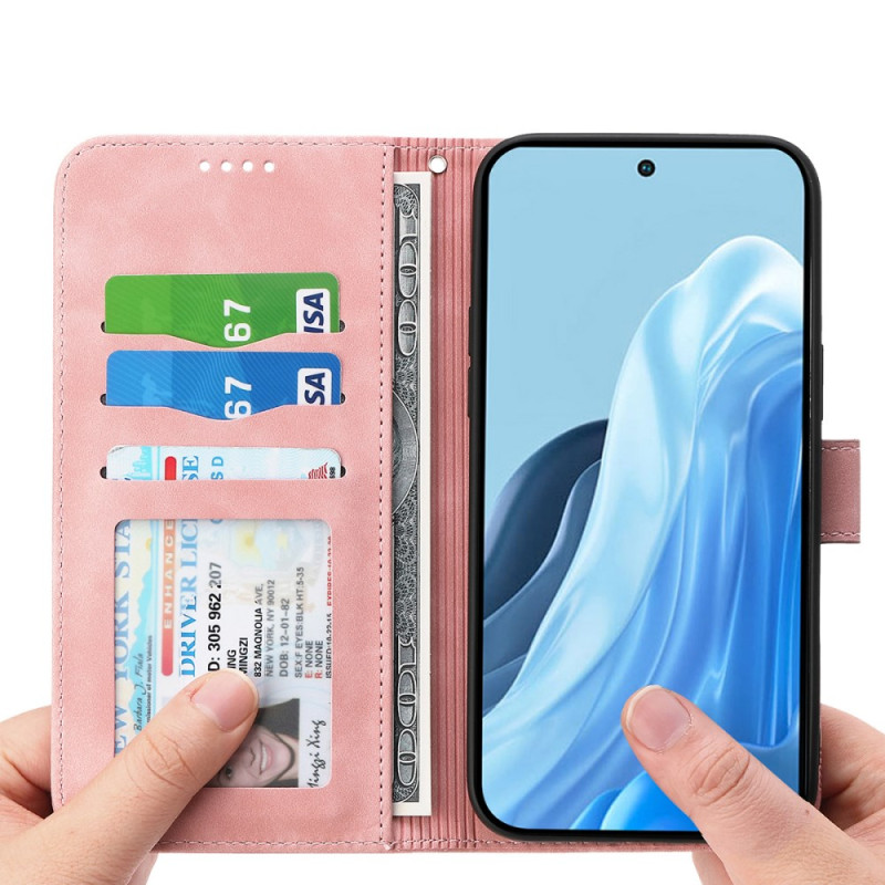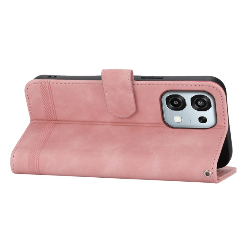 Tyylikäs lompakkokotelo, jossa on hienostunut viivapainatus. Joustava TPU-sisäkuori, kortti- ja käteislokerot, säädettävä jalusta ja turvallinen magneettisuljenta. Mukana käytännöllinen käsihihna.