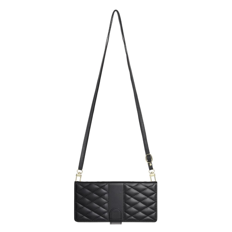 Hienostunut PU-nahkalompakko, jossa on timanttinen tikattu muotoilu. Lompakossa on 3 korttipaikkaa, 1 käteistasku, integroitu jalusta-toiminto ja turvallinen magneettisuljenta. Mukana irrotettava käsihihna ja säädettävä olkahihna maksimaalista jokapäiväistä käytännöllisyyttä varten.
