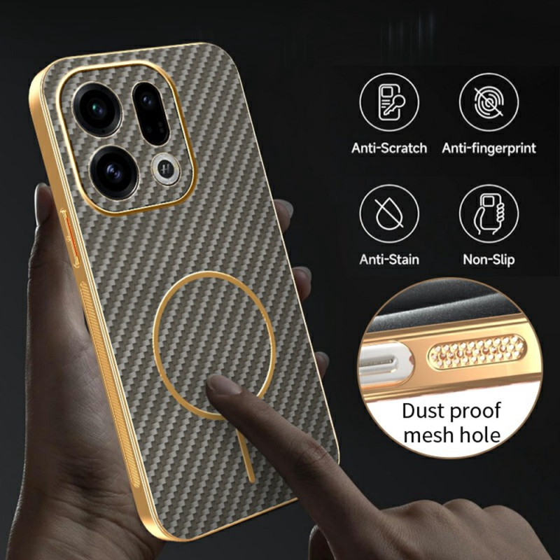 Suojaa Oppo Find X9 5G -puhelimesi tyylikkäästi tällä hiilikuitukuvioisella TPU-kotelolla. Sen ensiluokkainen elektrolyyttinen viimeistely tarjoaa optimaalisen suojan iskuja vastaan samalla kun se kestää sormenjälkiä. Hienostunut muotoilu ja täydellinen istuvuus.