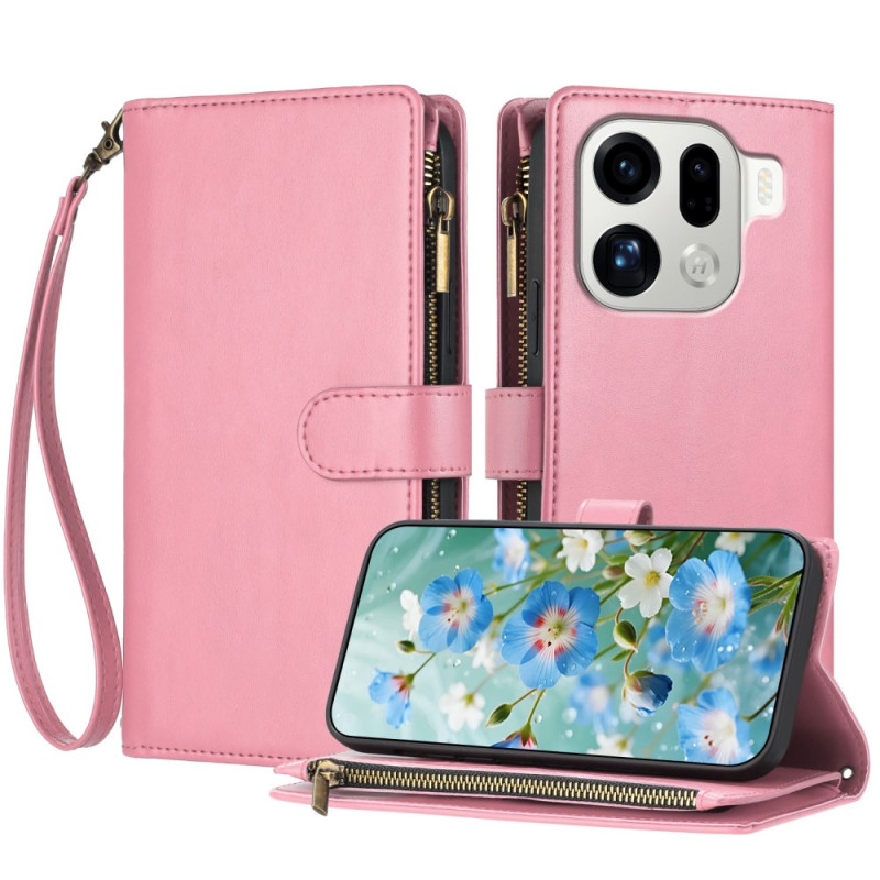 Tutustu Oppo Find X9 Pro 5G:n monitoimiseen lompakkokoteloon. Premium PU-nahkamalli, jossa on integroitu pidike, 8 korttipaikkaa, vetoketjullinen tasku ja irrotettava käsihihna. Optimaalinen iskusuoja tyylikkääseen arkikäyttöön.