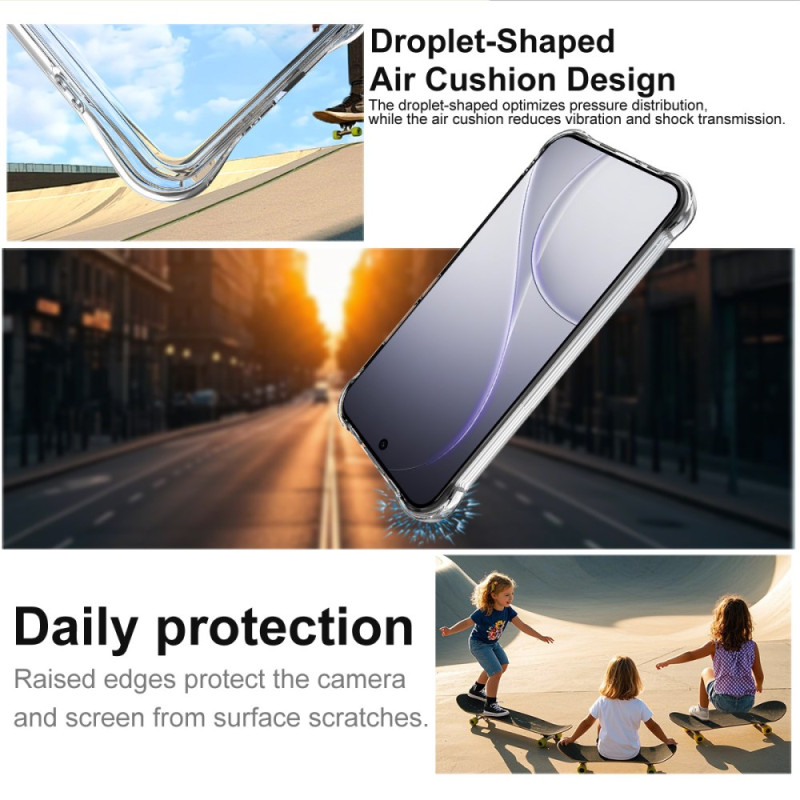 Suojaa Oppo Reno 15 5G tällä innovatiivisella läpinäkyvällä kotelolla. Kaikissa neljässä kulmassa on ilmatyynyt, jotka vaimentavat iskuja optimaalisesti, ja se tarjoaa täydellisen suojan säilyttäen samalla puhelimesi tyylikkyyden.