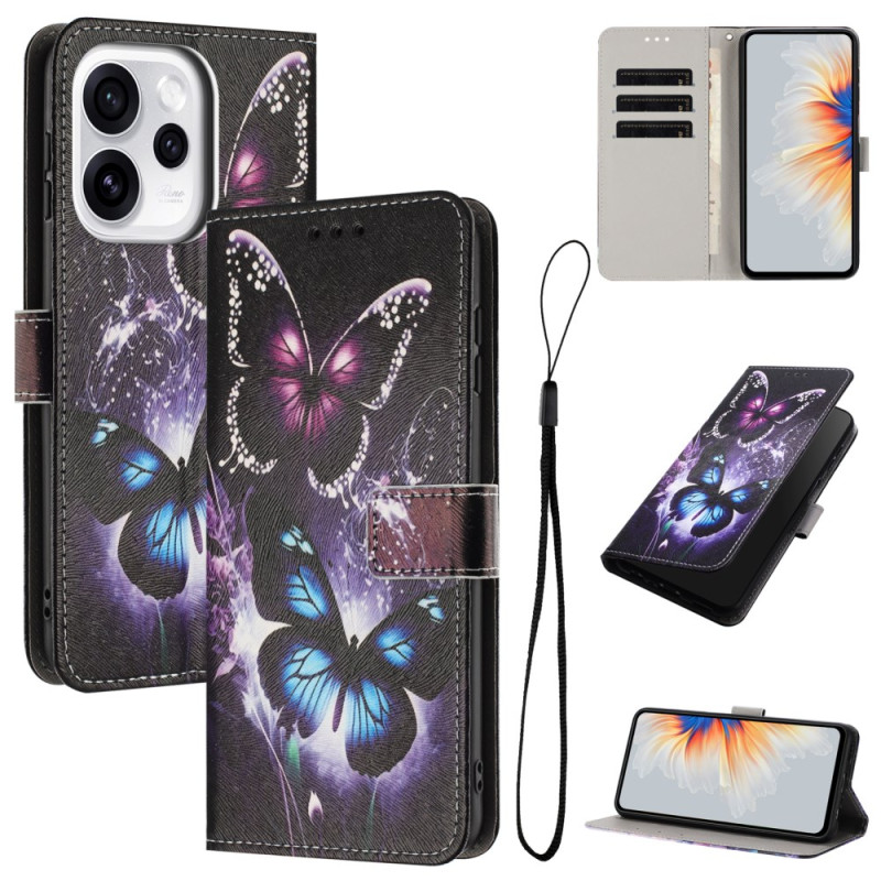 Elegantti lompakkokotelo kahdella perhosella Oppo Reno 15 5G:lle. Hienostunut muotoilu integroidulla korttipidikkeellä, taitettavalla jalustalla ja käytännöllisellä magneettisulkimella. Mukana käsihihna helppoa jokapäiväistä kuljettamista varten.