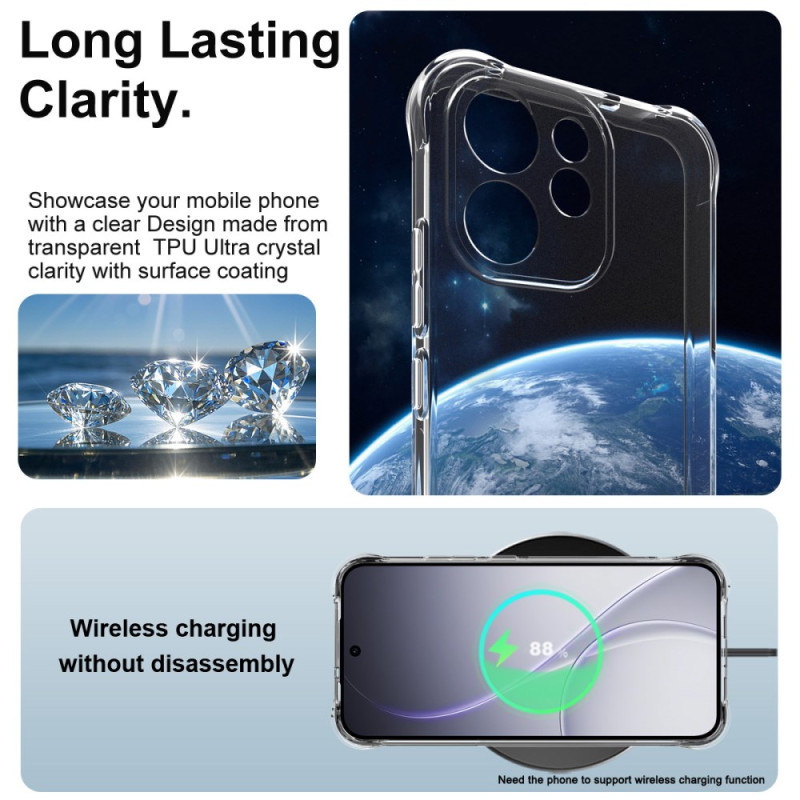 Protégez votre Oppo Reno 15 F 5G avec cette coque transparente ultra-résistante. Ses coussins d'air aux quatre coins absorbent les chocs efficacement. Design avec trou pour dragonne, rebords surélevés pour l'écran et l'objectif photo.