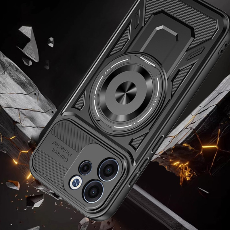 Protégez votre Oppo Reno 15 F 5G avec cette coque magnétique innovante dotée d'un support rotatif à 360°. Double protection militaire anti-choc, compatible avec les supports magnétiques de voiture et accessoires. Design ergonomique à texture fibre de carbone pour un style sportif et une prise en main optimale.