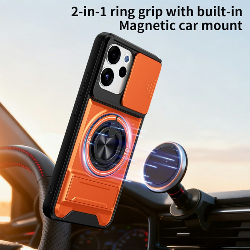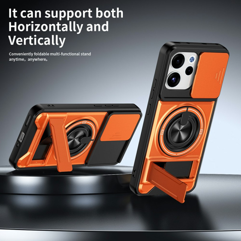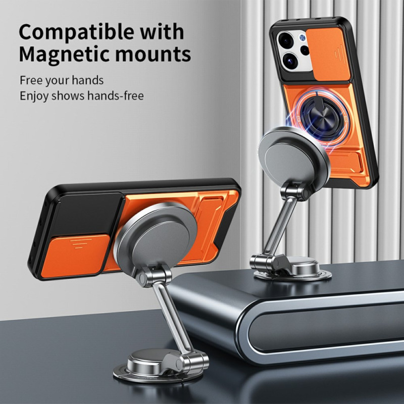 Protégez votre Oppo Reno 15 F 5G avec cette coque magnétique innovante. Elle combine une double protection renforcée, un anneau support rotatif 360°, un support pliable pour visionnage mains libres et une protection caméra coulissante unique.