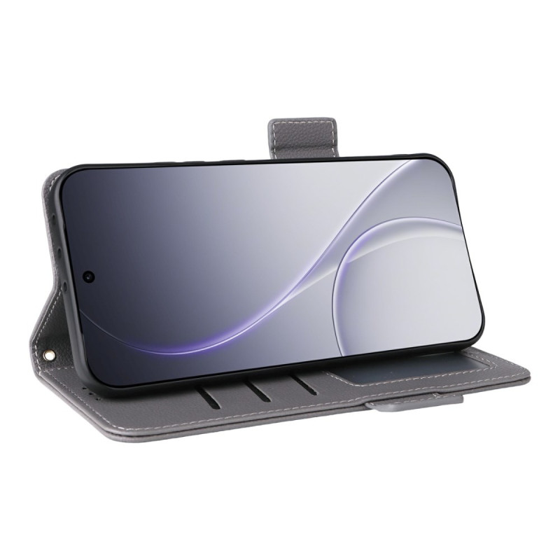 Tyylikäs lompakkokotelo, jossa on lychee-kuosi Oppo Reno 15 Pro 5G:lle. Sisältää lokerot korteille ja rahoille, integroidun handsfree-tuen, turvallisen magneettisuljennan ja käytännöllisen käsihihnan. Täydellinen suoja jokapäiväisiä kolhuja ja iskuja vastaan.