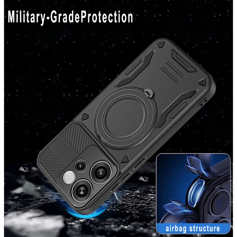 Protégez votre Oppo Reno 15 Pro 5G avec cette coque magnétique antichoc dotée d'une béquille rotative 360°. Conception renforcée offrant une protection optimale contre les chocs et les chutes, compatible avec les accessoires magnétiques.