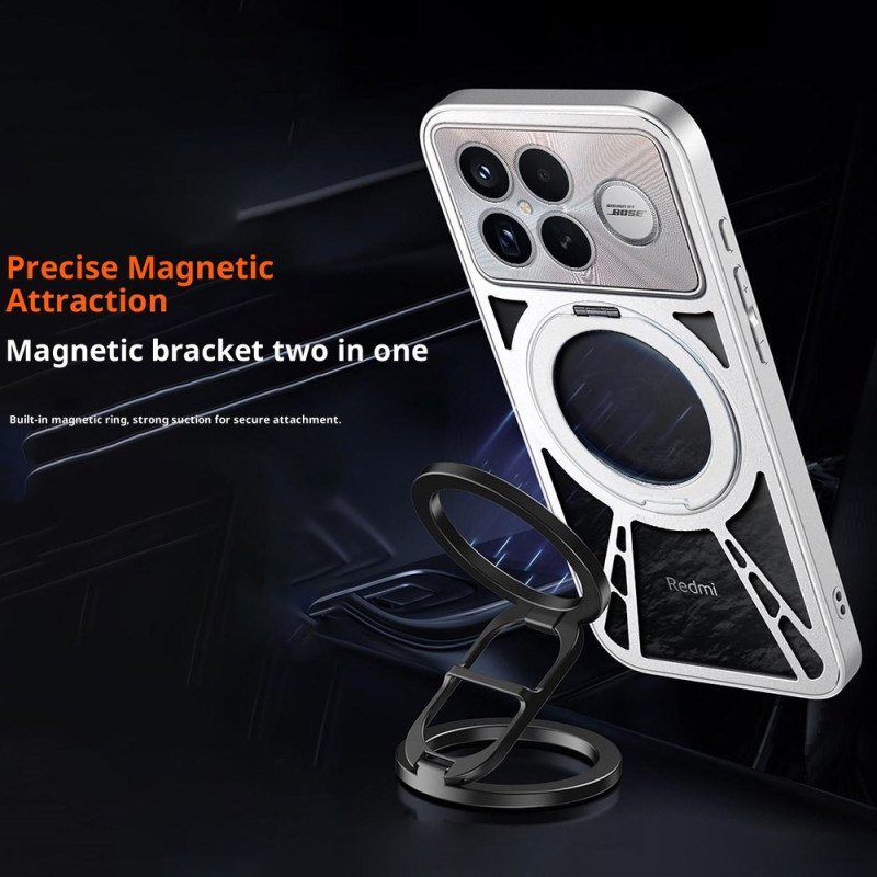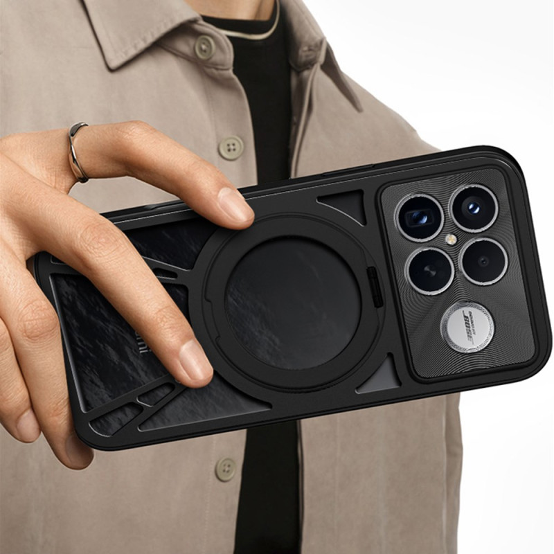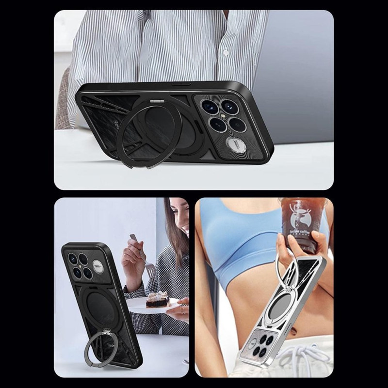 Suojaa älypuhelimesi tyylikkäästi tällä erittäin vahvalla suojakuorella , jossa on integroitu pyörivä pidike ja MagSafe-yhteensopivuus. Sen rei'itetty muotoilu takaa optimaalisen lämmönpoiston, ja sen vahvistetut reunukset suojaavat näyttöä ja kameraa kolhuilta ja naarmuilta.