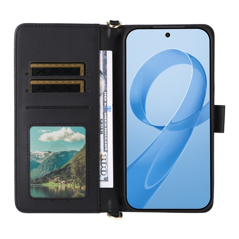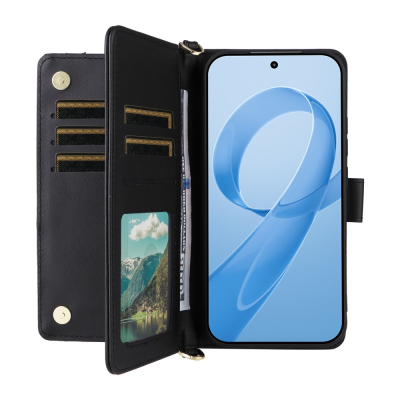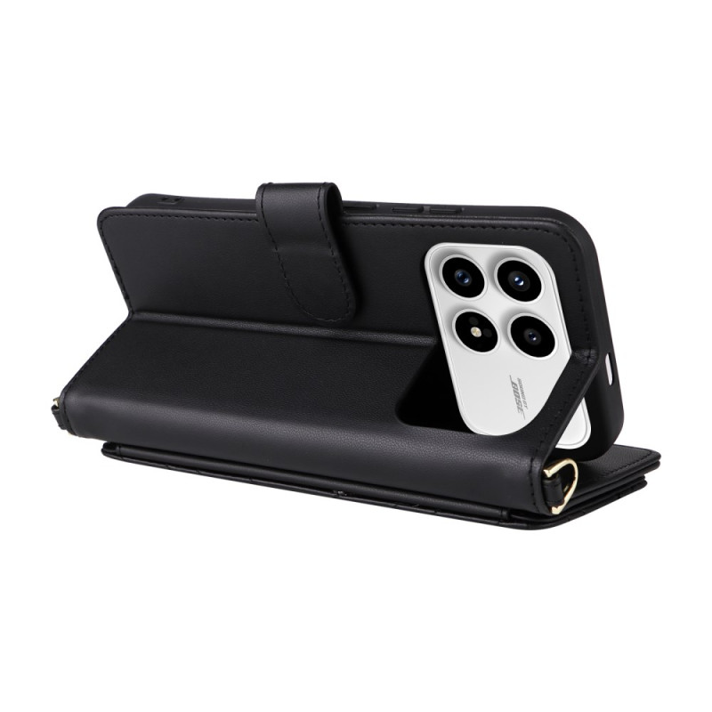 Tyylikäs lompakkokotelo, jossa on säädettävä jalusta ja irrotettava olkahihna. Sisältää 6 korttipaikkaa ja 1 setelilokeron. Valmistettu ensiluokkaisesta PU-nahasta ja kulutusta kestävästä TPU:sta, joka suojaa täydellisesti kolhuilta ja naarmuilta.