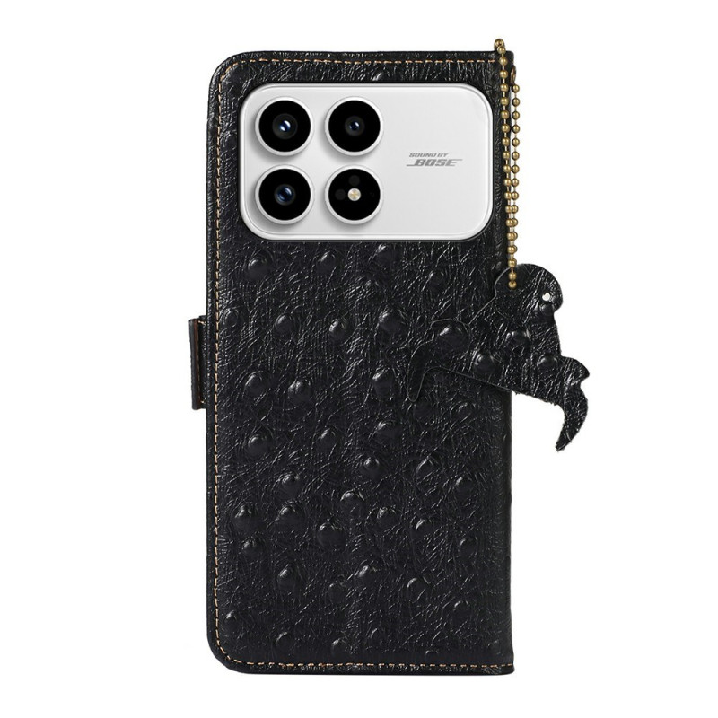 Suojaa älypuhelimesi tyylikkäästi tällä strutsinkuvioisella aidosta nahasta valmistetulla lompakkokotelolla. RFID-sulkutekniikalla varustettu lompakko suojaa pankkikorttisi ja tarjoaa samalla käytännöllisen säilytystilan, jossa on useita kortti- ja käteispaikkoja.