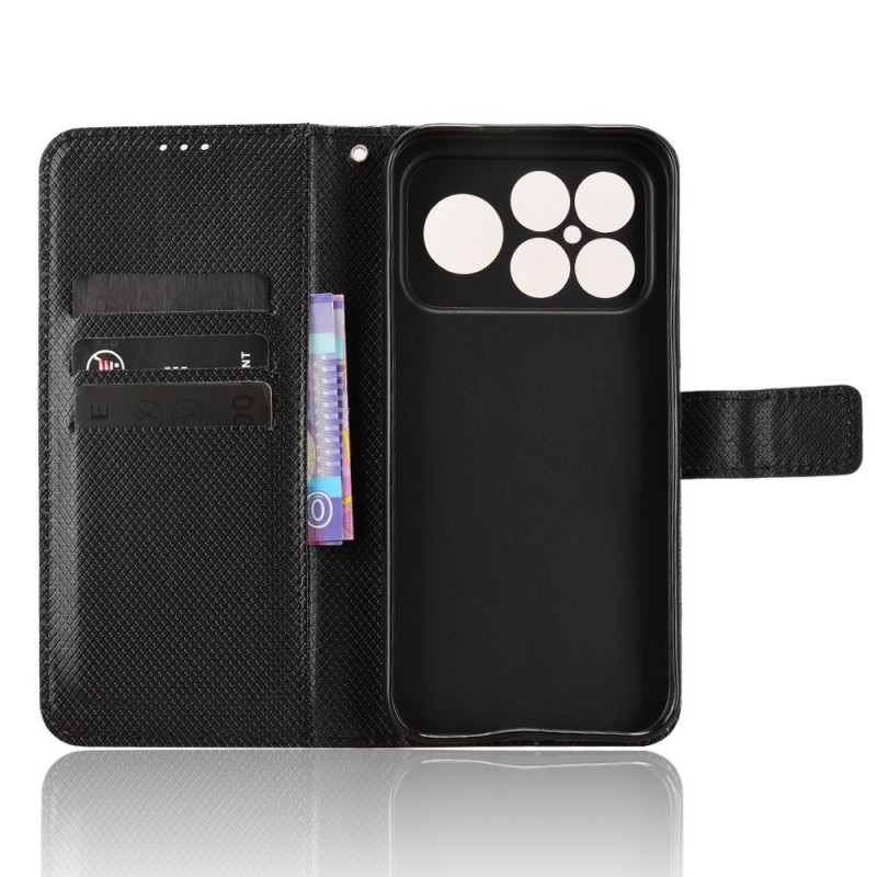 Tutustu tyylikkääseen timantinkuvioiseen lompakkokoteloon Poco F8 Ultra -puhelimelle. Siinä on useita kortti- ja käteislokeroita, turvallinen magneettisuljenta ja integroitu kokoontaitettava jalusta. Mukana tulevan käsihihnan ansiosta sitä on helppo kantaa mukana.