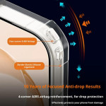 - Ensiluokkainen suojaus: täydellinen yhdistelmä kestävyyttä ja läpinäkyvyyttä, joka suojaa optimaalisesti putoamiselta.