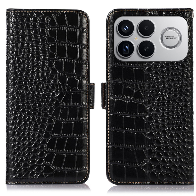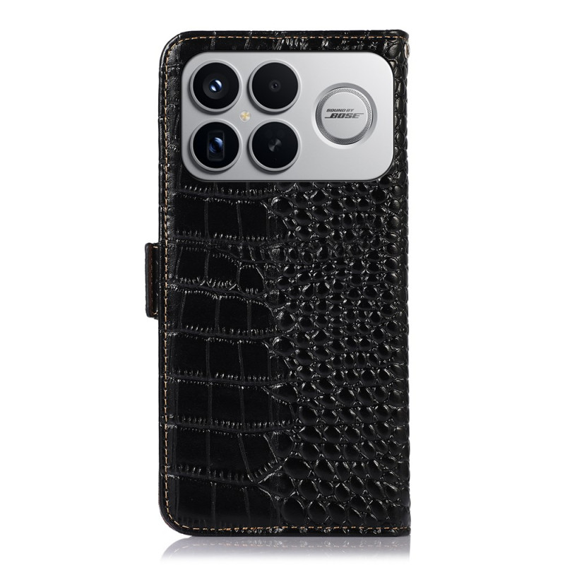 Protégez votre smartphone avec élégance grâce à cet étui portefeuille en cuir véritable à texture crocodile. Doté de la technologie de blocage RFID, il offre 3 emplacements pour cartes et 1 poche pour espèces. Son support ajustable et ses fermoirs magnétiques garantissent praticité et sécurité au quotidien.