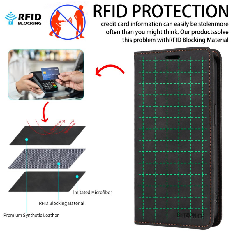 Protégez votre Xiaomi Poco M7 4G avec cet étui portefeuille élégant. Doté d'une fermeture magnétique sécurisée, d'une protection RFID avancée et d'un support intégré. Combinez style et fonctionnalité avec 2 emplacements pour cartes et 1 poche...