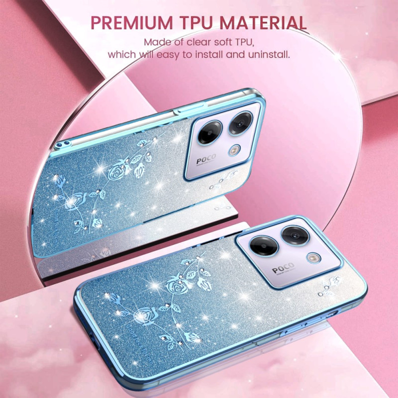 Protégez votre Xiaomi Poco M7 Pro 5G avec élégance grâce à cette coque en TPU flexible ornée de fleurs éternelles et de strass scintillants. Son design dégradé à paillettes apporte une touche glamour et tendance à votre téléphone.