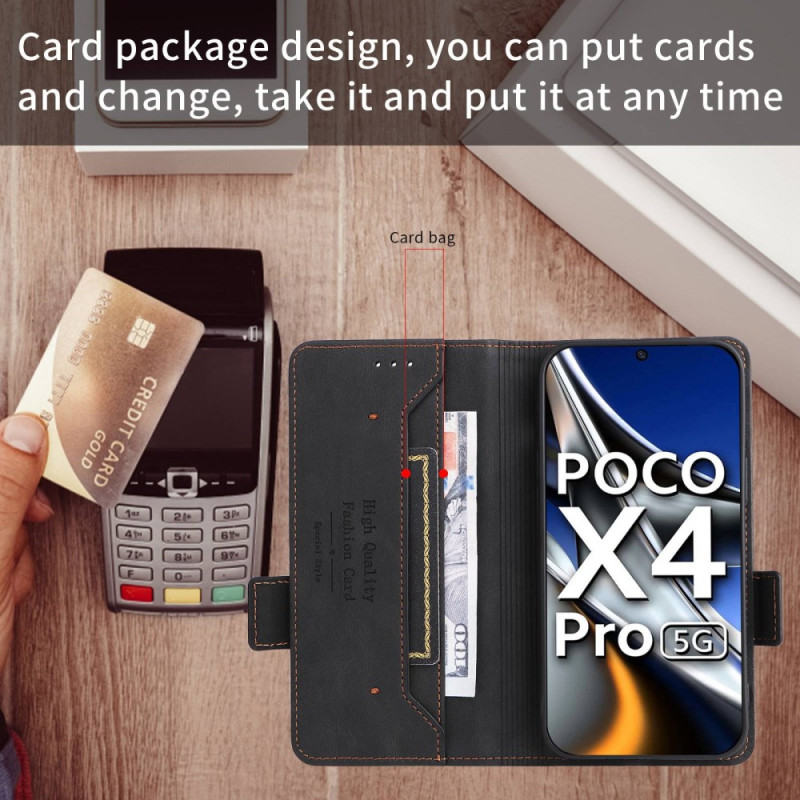 Poco X4 Pro 5G näyttää upealta tässä tyylikkäässä nahkatehosteisessa fläppisuojuksessa, joka kiinnittää sen tehokkaasti ja huomaamattomasti.