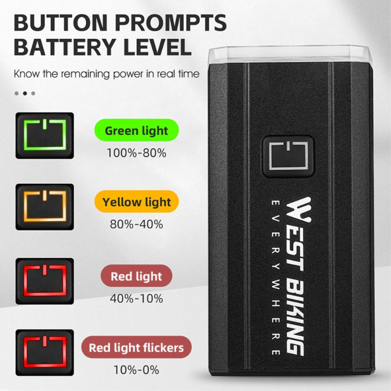 Luotettava valaistus ja kestävyys ääriolosuhteissa ovat tämän WEST BIKING -valaisimen suunnittelun ytimessä. Sen alumiiniseoksesta valmistettu suojakuori takaa tehokkaan lämmönsiirron ja lisää kestävyyttä, ja IPX6-vedenpitävyysluokituksen ansiosta se on valmis kohtaamaan kaikki sääolosuhteet. 1000 lumenin valovoiman ansiosta se takaa selkeän näkyvyyden pitkienkin matkojen päähän, mikä on välttämätöntä yöaikaisen turvallisuuden kannalta. Sen 4400 mAh:n akku tarjoaa pidennetyn autonomian, jota täydentää viisi valotilaa (mukaan lukien SOS), jotka mukautuvat kaikkiin tilanteisiin. Pika-asennusjärjestelmän ansiosta asennus on helppoa ja kätevää.