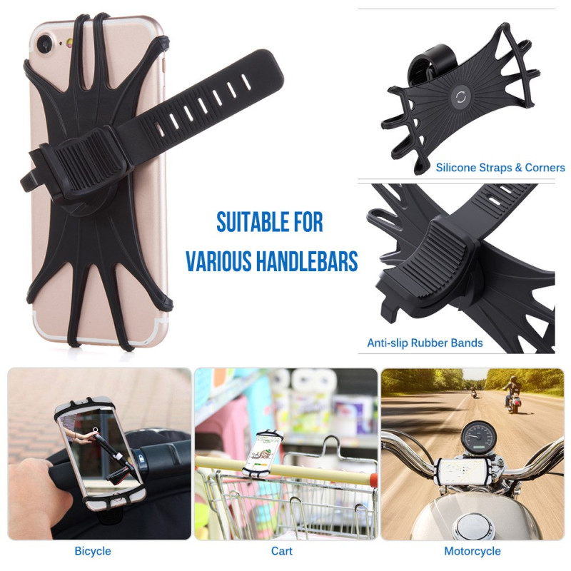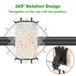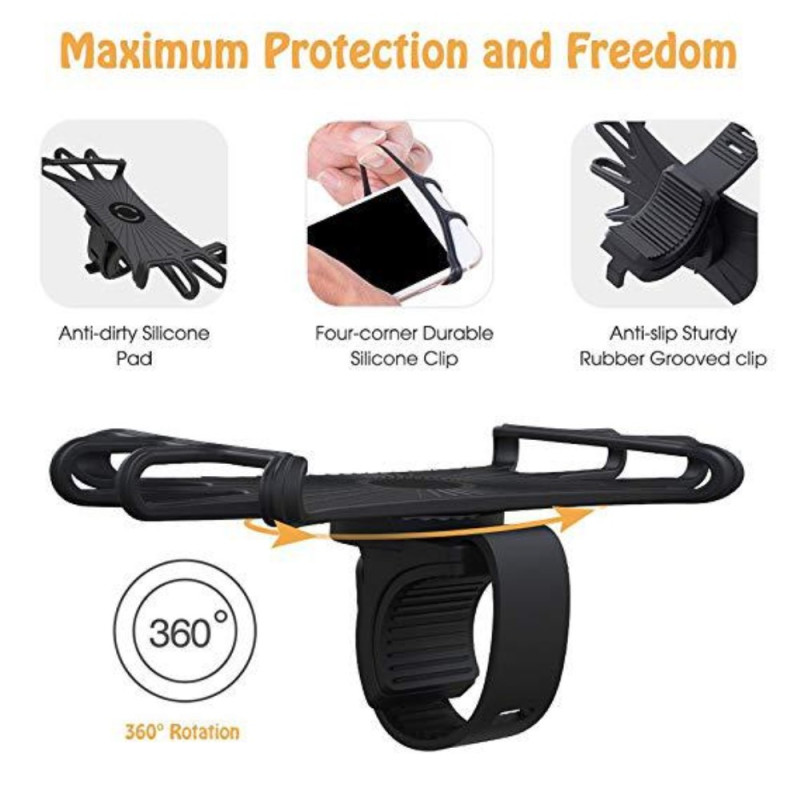 Kiinnikkeen joustava, liukumaton rakenne takaa vakauden epätasaisessa maastossa. Se on valmistettu sitkeästä, joustavasta silikonista ja tarjoaa tehokkaan iskusuojan tien tärinää vastaan. Pidennettävä kantolenkki takaa universaalin yhteensopivuuden 4-6 tuuman älypuhelinten kanssa. Uritettu kumikiinnike pitää sen tukevasti kiinni ohjaustangossa. 360 asteen kääntymisen ansiosta käyttäjät voivat säätää katselukulmaa optimaalista navigointia varten pysty- tai vaakatasossa.