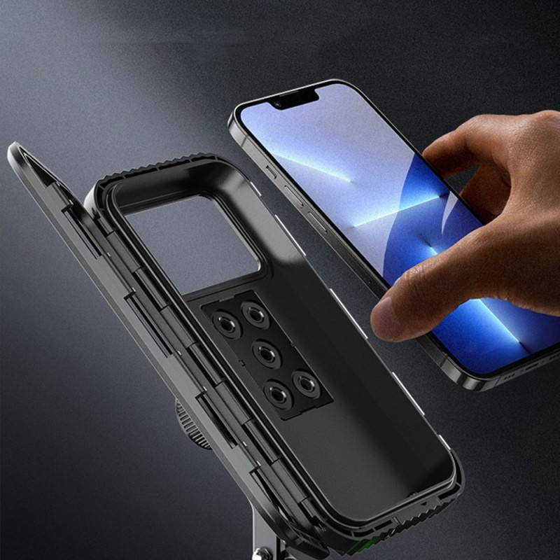 Mielenrauhasi on taattu. Tämä kiinnike suojaa älypuhelimesi täydellisesti säästä ja nopeudesta riippumatta. Se on suunniteltu kiinnitettäväksi turvallisesti taustapeiliin (moottoripyörä, sähköpyörä), joten se poistaa sen putoamisen tai rikkoutumisen riskin. Lämmönkestävä ABS- ja nano-PU-suojakuori tarjoaa kestävän, vedenpitävän suojan vettä, lunta ja pölyä vastaan. Jalusta on yleispätevä, ja se sopii 4,0-7,0 tuuman puhelimille. Sen muotoilun ansiosta se on nopea ja helppo asentaa välitöntä käyttöä varten.
