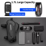 Tämän rinkan tehtävänä on mahdollistaa sujuva vuorovaikutus navigointisovelluksen kanssa ja pitää työkalut kuivina. Se on suunniteltu pitkille matkoille, ja sen sisällä on runsaasti tilaa ulkoiselle akulle, korjaussarjalle ja henkilökohtaisille tavaroille. Erittäin herkkä TPU-kalvo (0,3 mm) helpottaa Stravan ja karttojen käyttöä. Sen vedenpitävä rakenne suojaa sisältöä kosteudelta. Laukussa on audiokaapelin läpivienti ja pehmeät vetoketjun vetimet nopeaa ja mukavaa käsittelyä varten ajon aikana. Se on yhteensopiva enintään 6,8 tuuman älypuhelinten kanssa.
