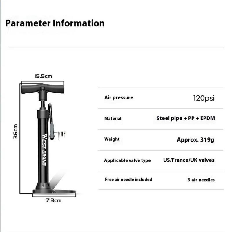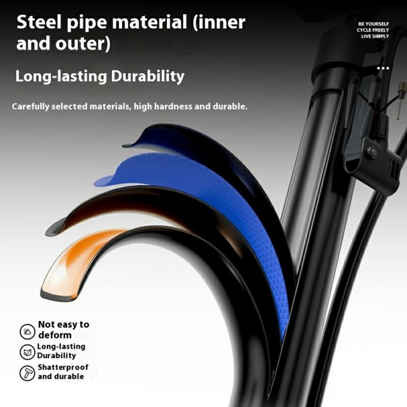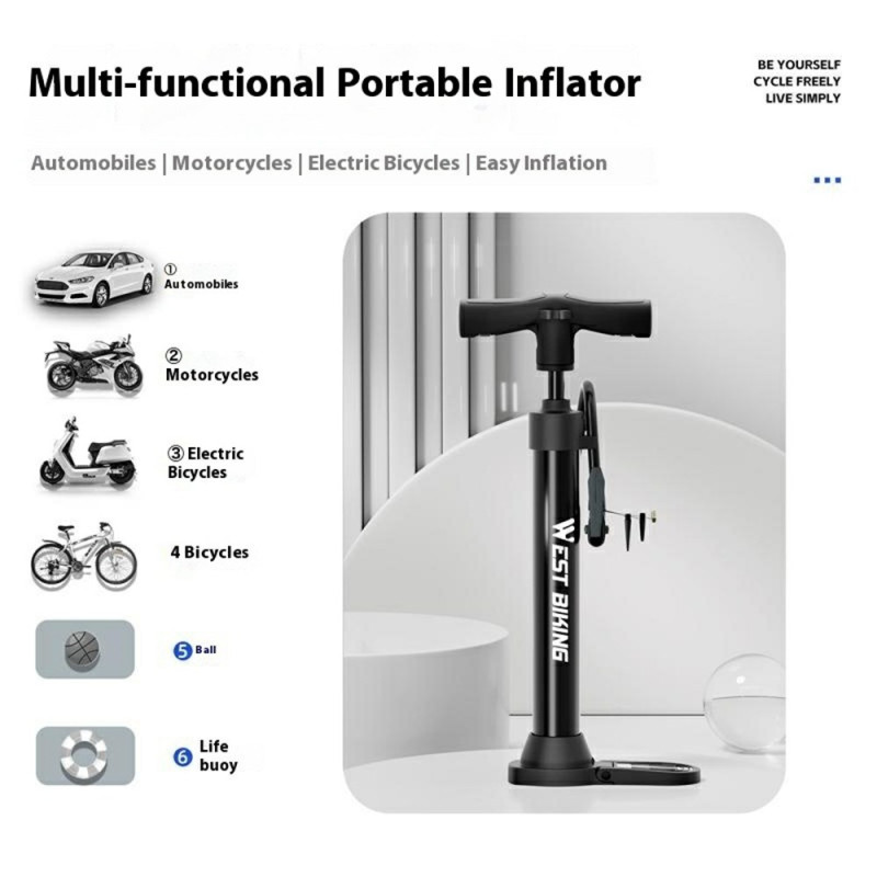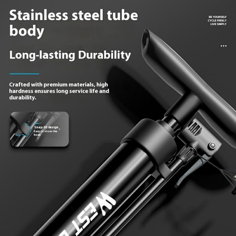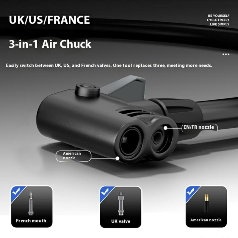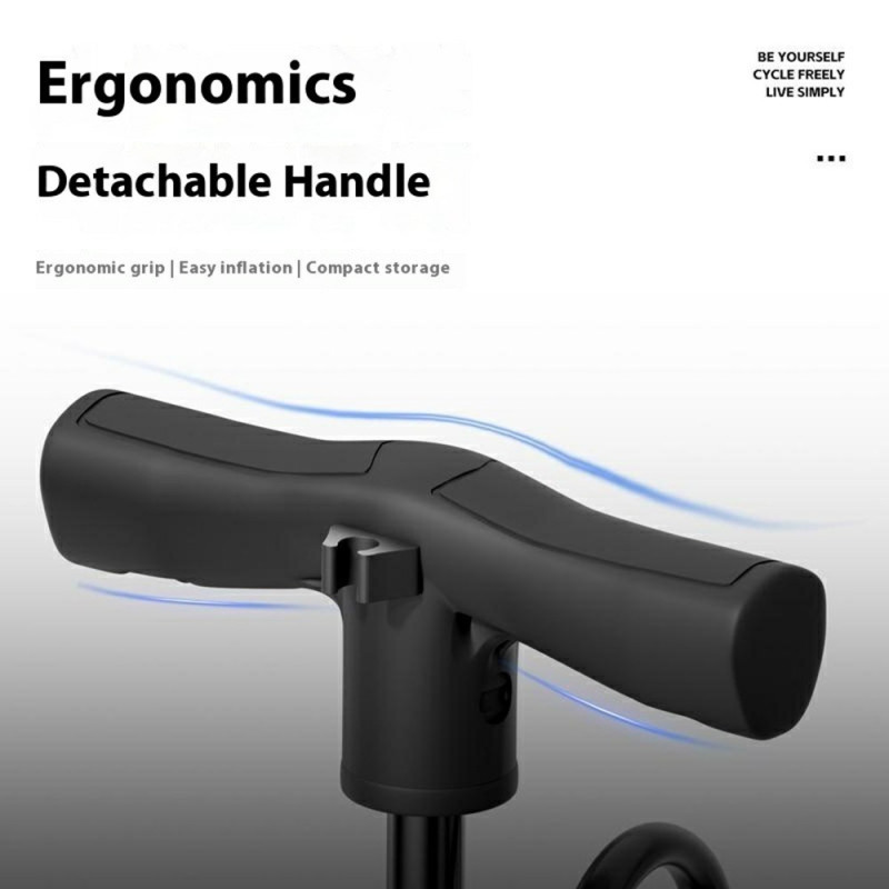 Tämä pumppu on suunniteltu maksimitehokkuutta varten, ja se perustuu lujaan teräsrakenteeseen. Se kestää jopa 120 PSI:n paineita, joten se on ihanteellinen korkeaa painetta vaativille renkaille (maantiepyörät). Sen monipuolisuuden takaa sen yleinen yhteensopivuus Presta-, Schrader- ja Dunlop-venttiilien kanssa, mikä kattaa kaikentyyppiset polkupyörät, moottoripyörät ja sähköajoneuvot. Kahva on irrotettava, joten se on helppo säilyttää ja pumpata. Tämä laite on välttämätön apulainen kotihuollossa ja matkoilla.