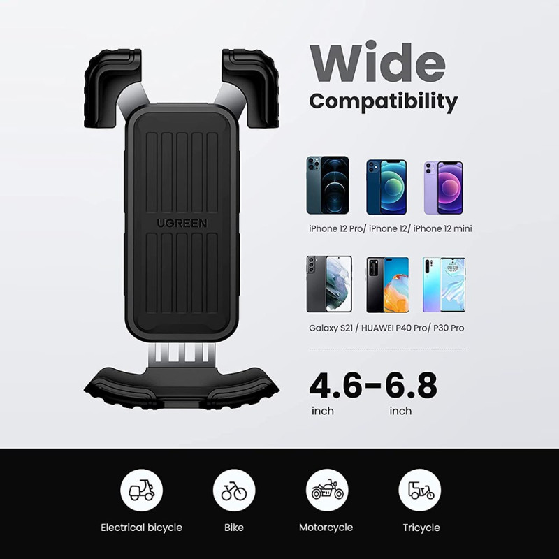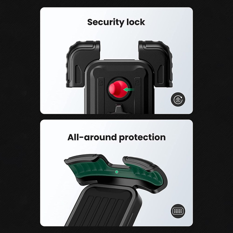 360 asteen säätövapaus ja yhden käden ohjaus takaavat turvallisen navigoinnin kaikentyyppisille kaksipyöräisille ajoneuvoille. Tämä yleispidike kiinnittää 4,6-6,8 tuuman älypuhelimet kaksoislukitusmekanismin ansiosta, joka pitää metallitiivisteet tukevasti paikallaan. Silikonipinnoite vaimentaa iskuja ja suojaa puhelinta naarmuilta. Ruuvikiinnitys on yksinkertainen ja sopii 15-44,5 mm:n ohjaustankoihin, kattaen moottoripyörät, sähköpyörät ja lastenvaunut. Täydellinen kierto takaa optimaalisen katselukulman aina, myös ajon aikana.