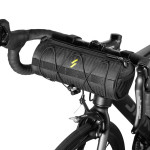 Koska ohjaustangon sotku ei saisi haitata olennaisten tavaroiden saatavuutta, tämä kantolaukku on optimoitu yksinkertaisuuden vuoksi. Se on valmistettu kestävästä polyesteristä, ja siinä on runsaasti säilytystilaa avaimille, korjaustyökaluille ja puhelimelle. Sen lieriömäinen, roiskevedenpitävä muotoilu suojaa sisältöä tehokkaasti kosteudelta. Heijastava kuminauha parantaa näkyvyyttä yöllä. Monipuolisen hihnajärjestelmän ansiosta tavarateline voidaan kiinnittää turvallisesti ohjaustankoon viidestä eri kohdasta, eikä se vaikuta nopeusmittarin tai ajovalojen asennukseen.