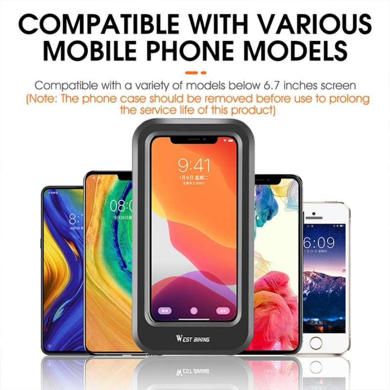 Valokuvaus ja navigointi eivät ole enää ylellisyyksiä edes vaikeissa sääolosuhteissa. Tämä WEST BIKING -kiinnike on täysin vedenpitävä, ja sen avulla voit kuvata maisemia täysin turvallisesti ilman, että kamera on tukossa. Sen magneettinen rebound-jalusta takaa erittäin vakaan, tärinää estävän pidon. Kiinnityspäässä on kaksoiskierto (360° tasossa ja 30° pystysuunnassa), jolloin kuvakulma voidaan säätää täydellisesti. Erittäin herkkä TPU-kosketuskalvo takaa pääsyn kaikkiin puhelimen toimintoihin (6,7 tuuman näyttöön asti).