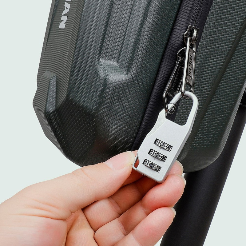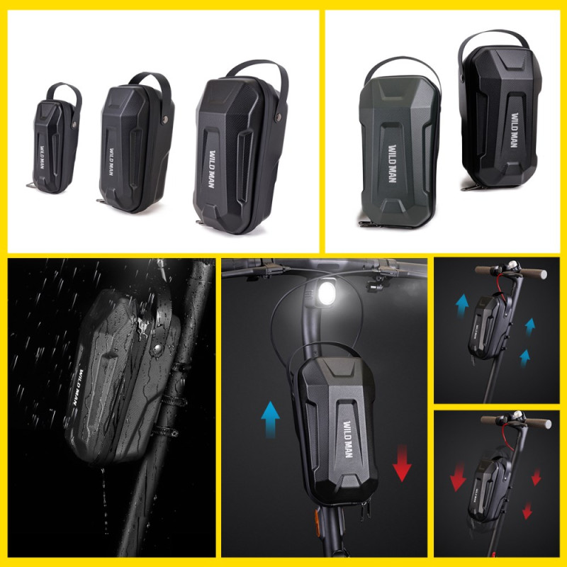 Tämän WILD MAN -laukun kovakuorinen muotoilu vastaa tarpeeseen turvata arvotavarasi. PU-nahasta ja EVA-kovakuoresta valmistettu laukku tarjoaa erinomaisen suojan iskuilta, vaikka skootteri putoaisi. Pikakiinnitysjärjestelmä mahdollistaa välittömän asennuksen ja irrotuksen ohjaustangosta. Tilavuudeltaan 4,5 litraa se tarjoaa kompaktin säilytystilan välttämättömille tavaroille tinkimättä ohjattavuudesta. Sen tyylikäs ulkonäkö täydentää täydellisesti sähköajoneuvojen modernia muotoilua.