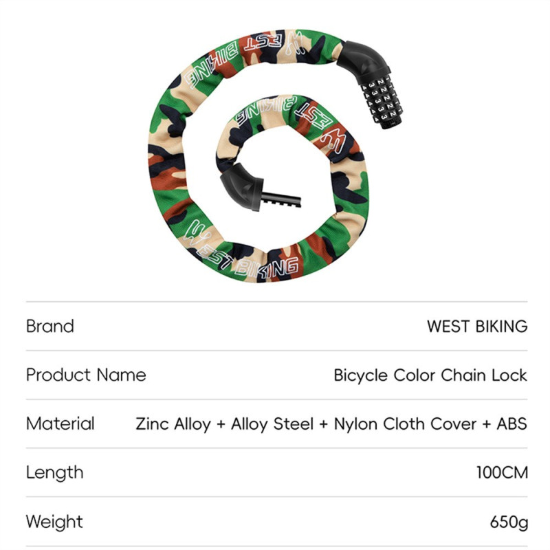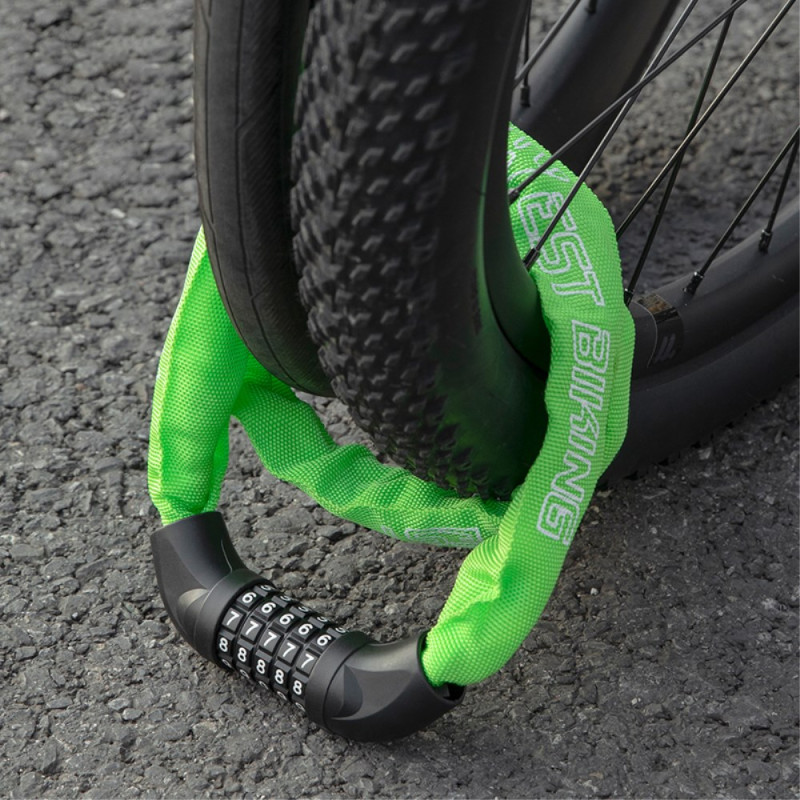 Varkausriski on kasvussa, joten vain kokeiltu ja testattu lukitusjärjestelmä voi tarjota täydellisen mielenrauhan. Tässä varkaudenestoketjussa käytetään viisinumeroista koodia (100 000 yhdistelmää) maksimaalisen turvallisuuden takaamiseksi. Sisäinen luja teräsvaijeri on päällystetty kestävällä nailonholkilla, joka suojaa ajoneuvon maalipintaa naarmuilta. Valettu sinkkiseoksesta valmistettu lukituspää tarjoaa vankan rakenteen. Pituus on 100 cm, joten se tarjoaa riittävän kantaman moottoripyörien, sähköpyörien ja maantiepyörien kiinnittämiseen kiinteisiin kohteisiin. Sen 650 g:n paino on ihanteellinen jokapäiväiseen kuljetukseen.