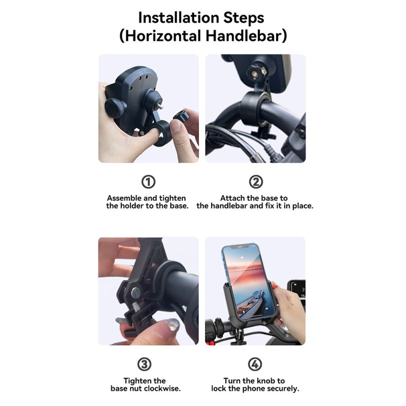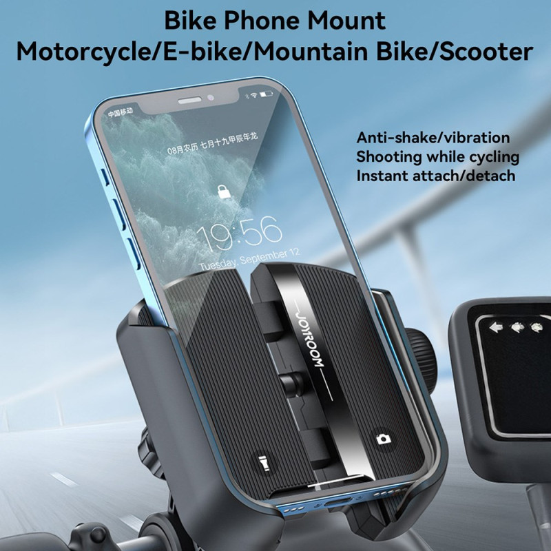 Tarve tallentaa vakaata videokuvaa ja käyttää puhelinta turvallisesti täyttyy nyt tämän JOYROOM-laitteen avulla. Se on suunniteltu niin, ettei se koskaan estä kameraa, ja se mahdollistaa jatkuvan videokuvauksen pyöräilyn aikana. Kiinnitysmekanismi sisältää tarkan kierteitetyn rakenteen, joka takaa voiman tasaisen jakautumisen ja tukevan otteen. Ohjaustangossa oleva kaksinkertainen turvasalpa estää liukumisen tai nykimisen. Muotoilu mahdollistaa nopean, yhden käden käytön, ja 360 astetta käännettävissä oleva kamera takaa selkeän näkyvyyden.