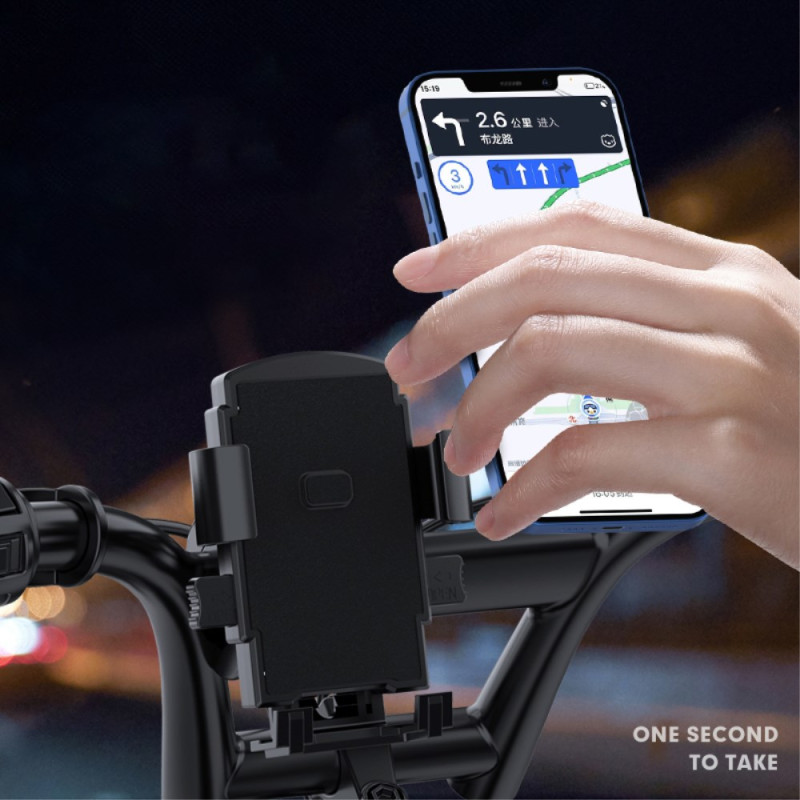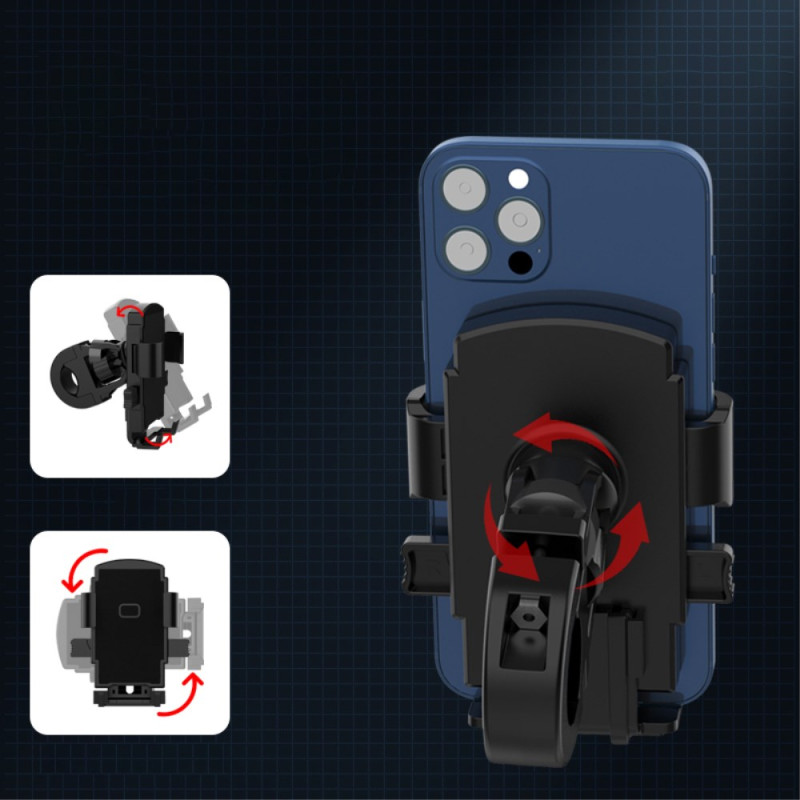 L'intégration d'un système de verrouillage automatique à un support élimine la friction de la fixation manuelle, assurant une prise instantanée. Ce support sécurise fermement les téléphones de 4.7 à 6.7 pouces. Le système attrape et verrouille le téléphone automatiquement, d'une simple pression, garantissant une stabilité maximale en mouvement. La conception ingénieuse ne bloque aucun bouton ni le port de charge. La tête rotative à 360 degrés permet un ajustement facile de l'angle de vue. Il offre la polyvalence d'être installé au guidon ou au rétroviseur.