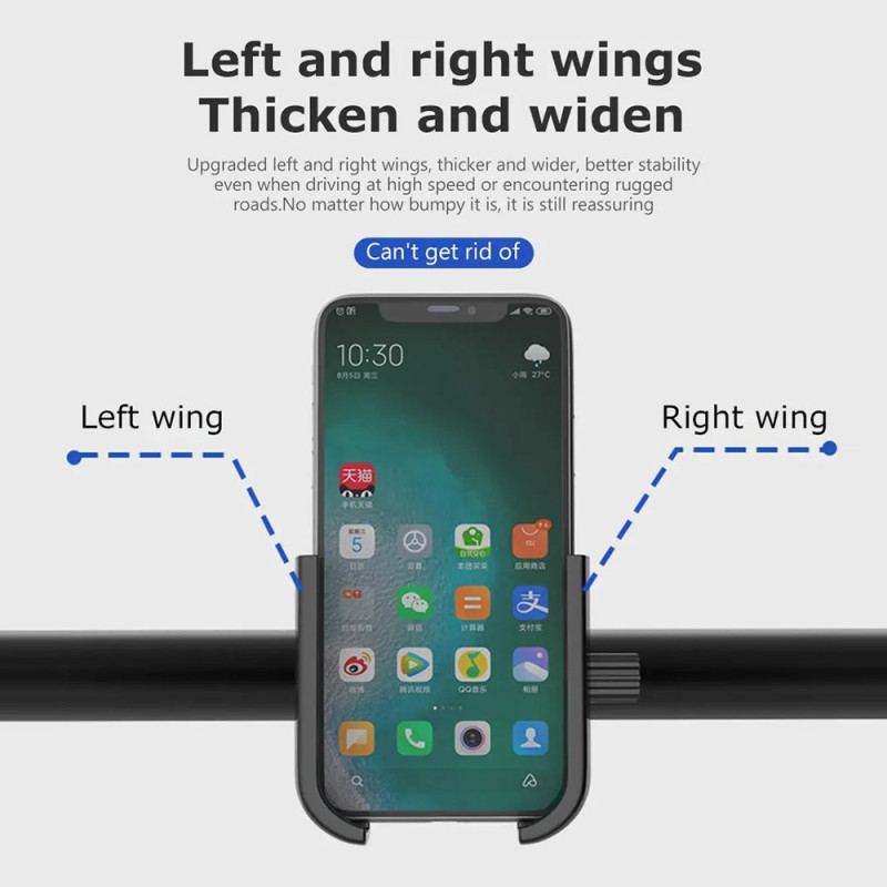 Issu d'un alliage d'aluminium de haute qualité, ce support garantit une base rigide, quel que soit le véhicule utilisé. La construction métallique assure une durabilité et une longévité exceptionnelles. Le support est compatible avec les appareils dont la largeur est comprise entre 60mm et 100mm. Grâce à sa rotation complète à 360 degrés et à l'ajustement de l'angle d'élévation, l'utilisateur peut optimiser la ligne de mire pour la navigation. Il s'installe solidement sur les guidons des vélos, motos, trottinettes électriques et autres véhicules.