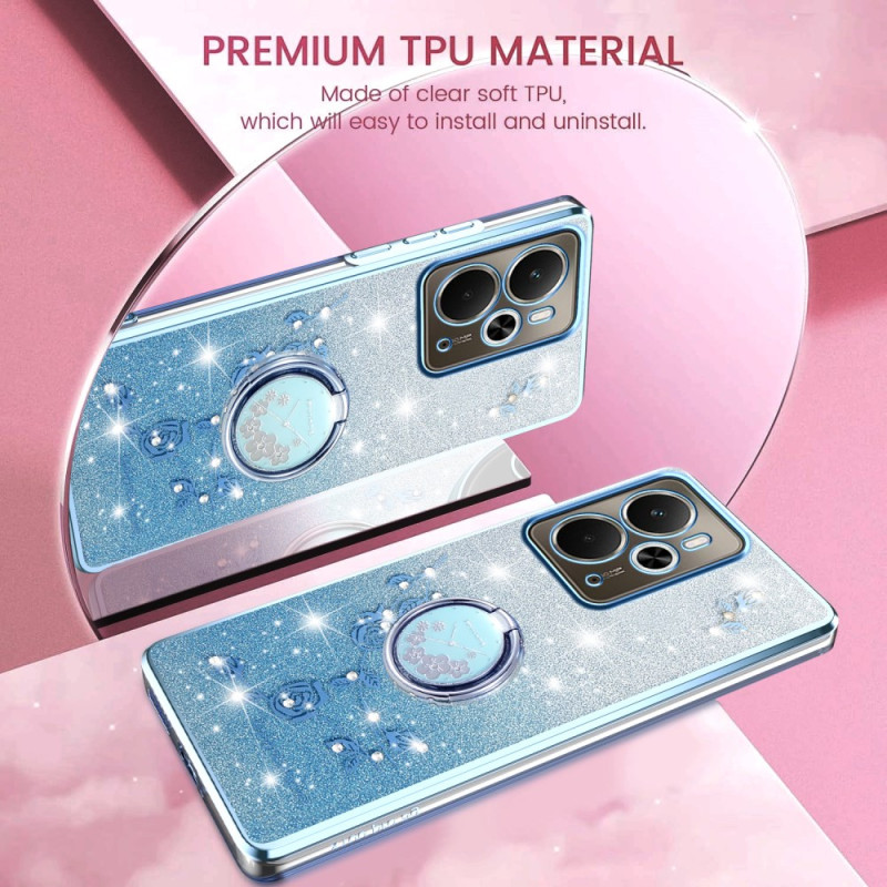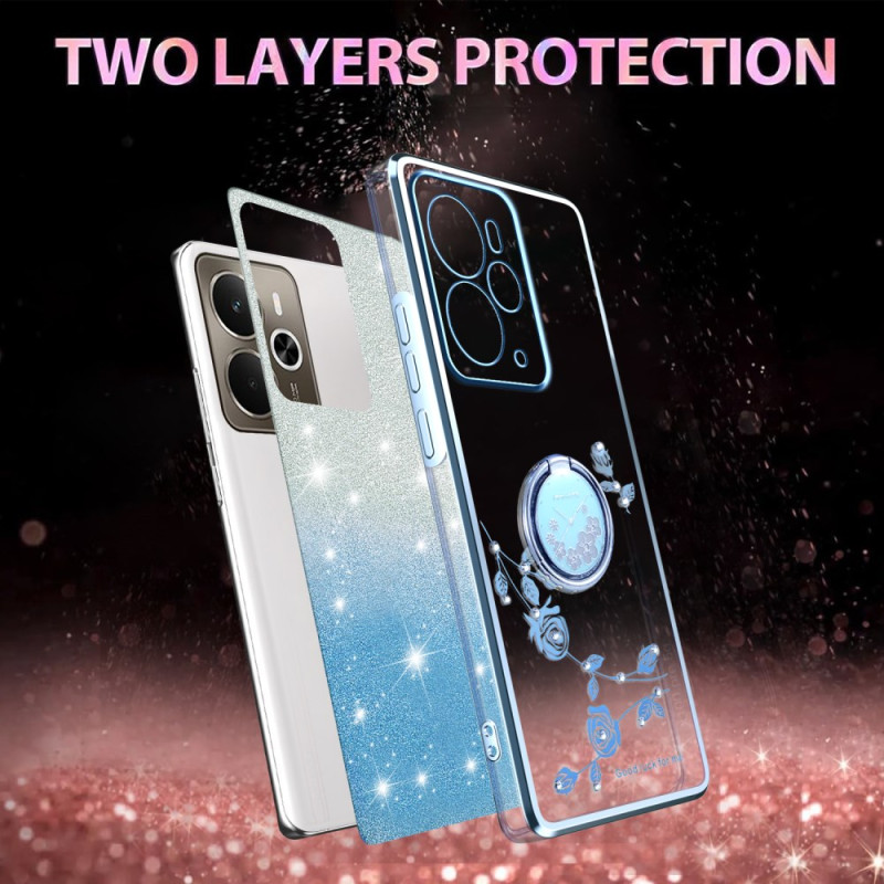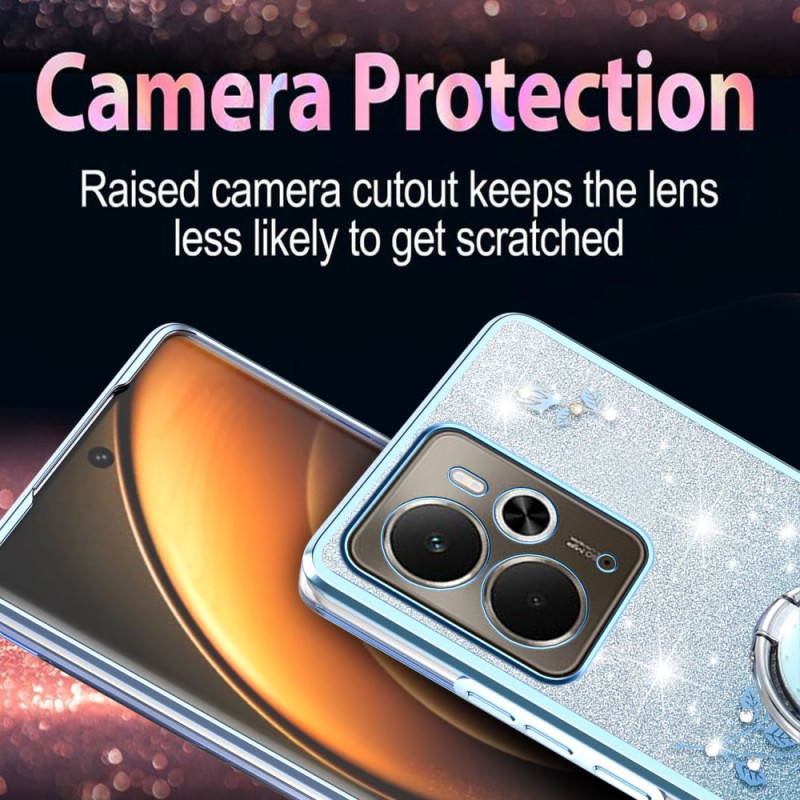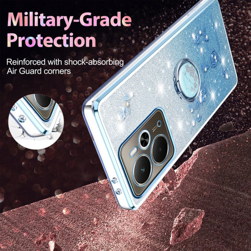, jossa on kimalteleva muotoilu, jossa on kukkia ja strasseja, tarjoaa luotettavan suojan.